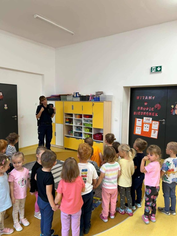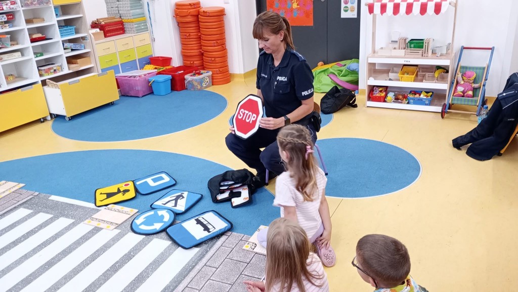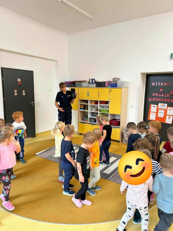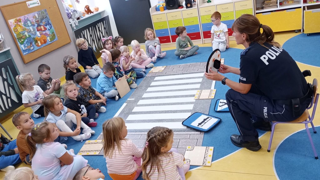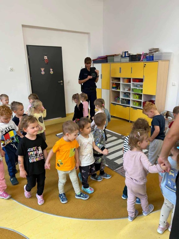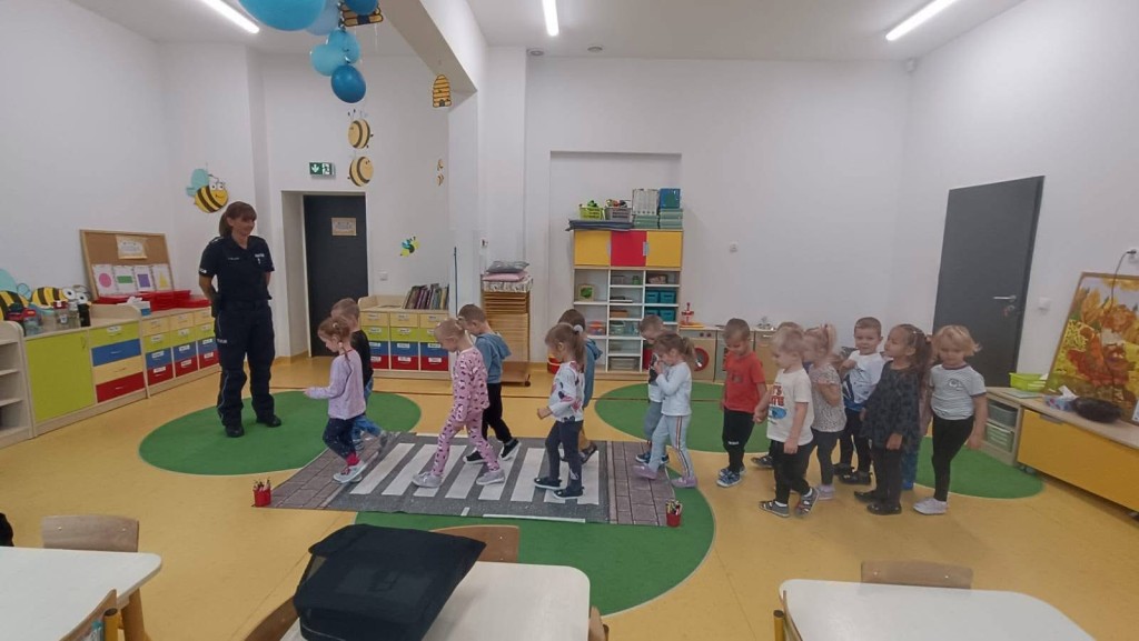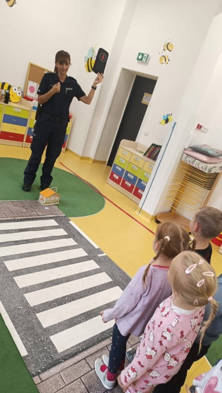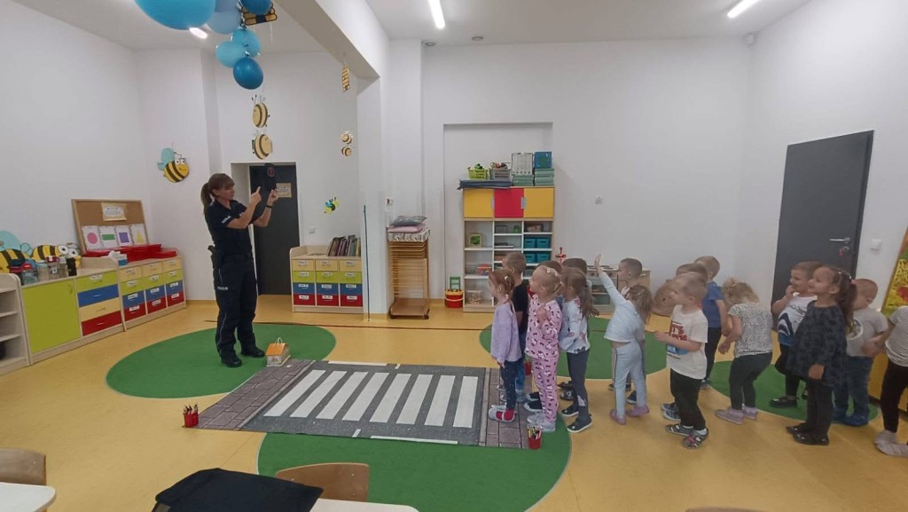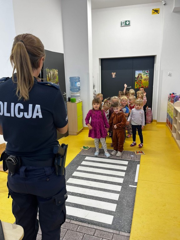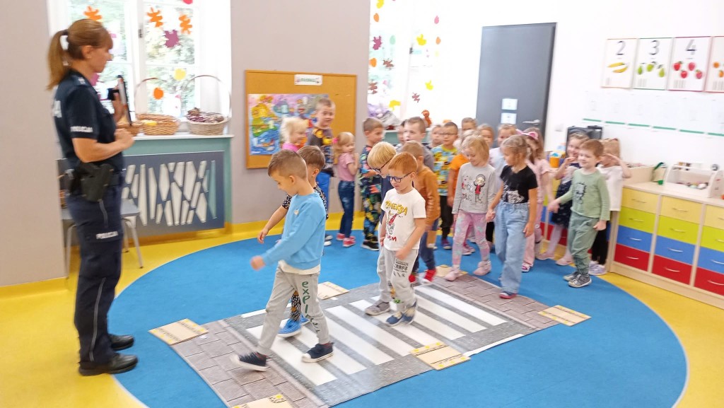 W tym tygodniu Nasze Przedszkole odwiedziła Pani Policjantka. Opowiedziała nam jak bezpiecznie zachowywać się w ruchu drogowym. Swoją wiedzę mogliśmy od razu wykorzystać w praktyce ucząc się prawidłowego przechodzenia przez pasy.