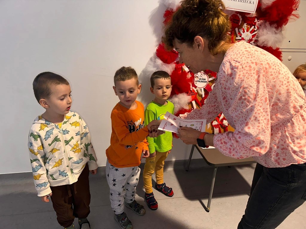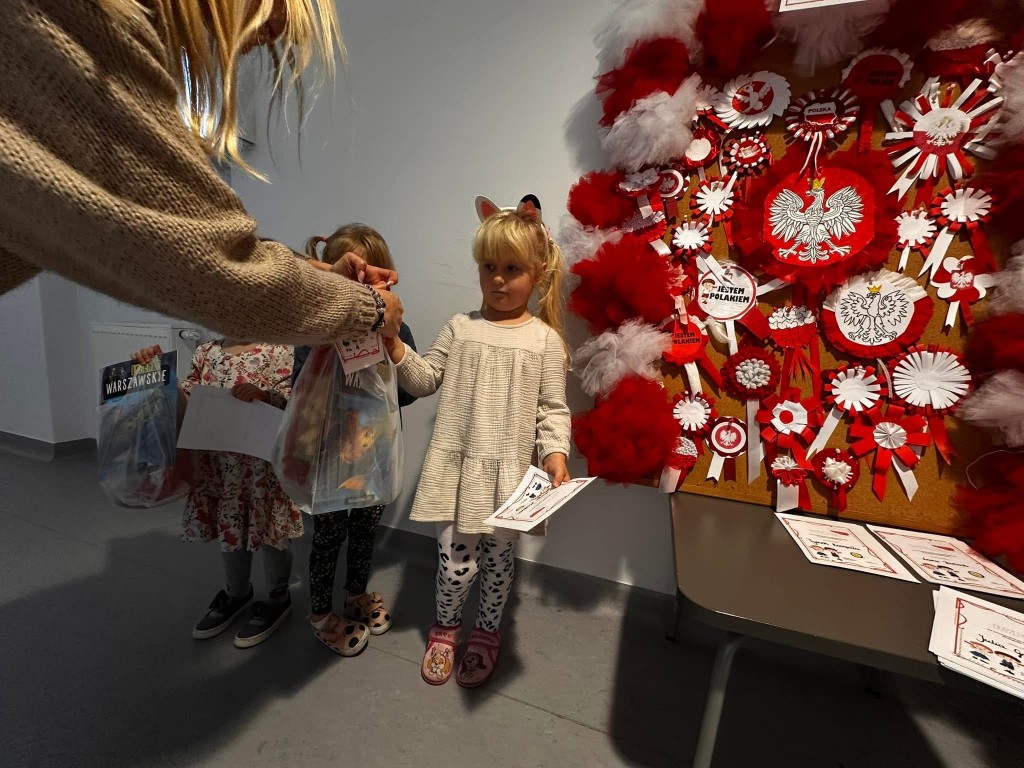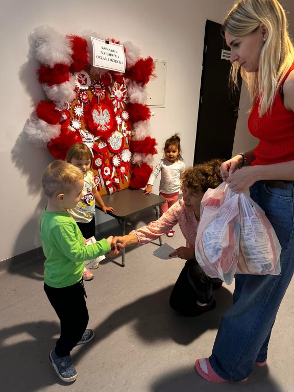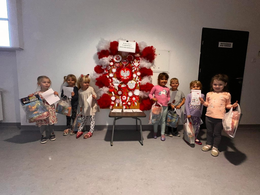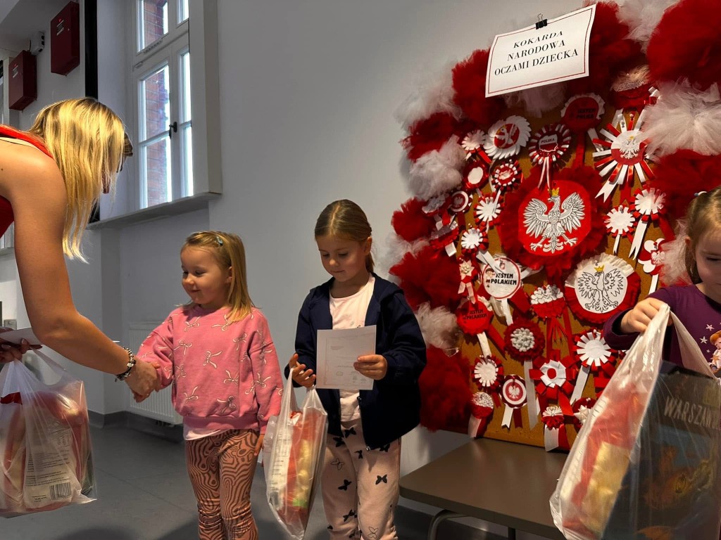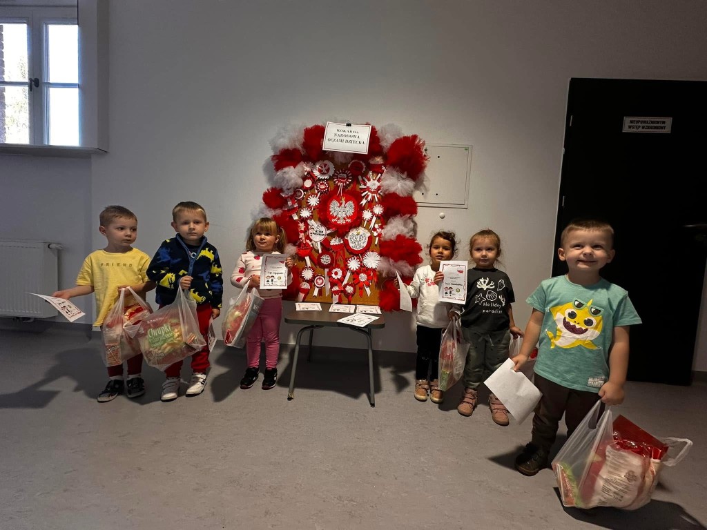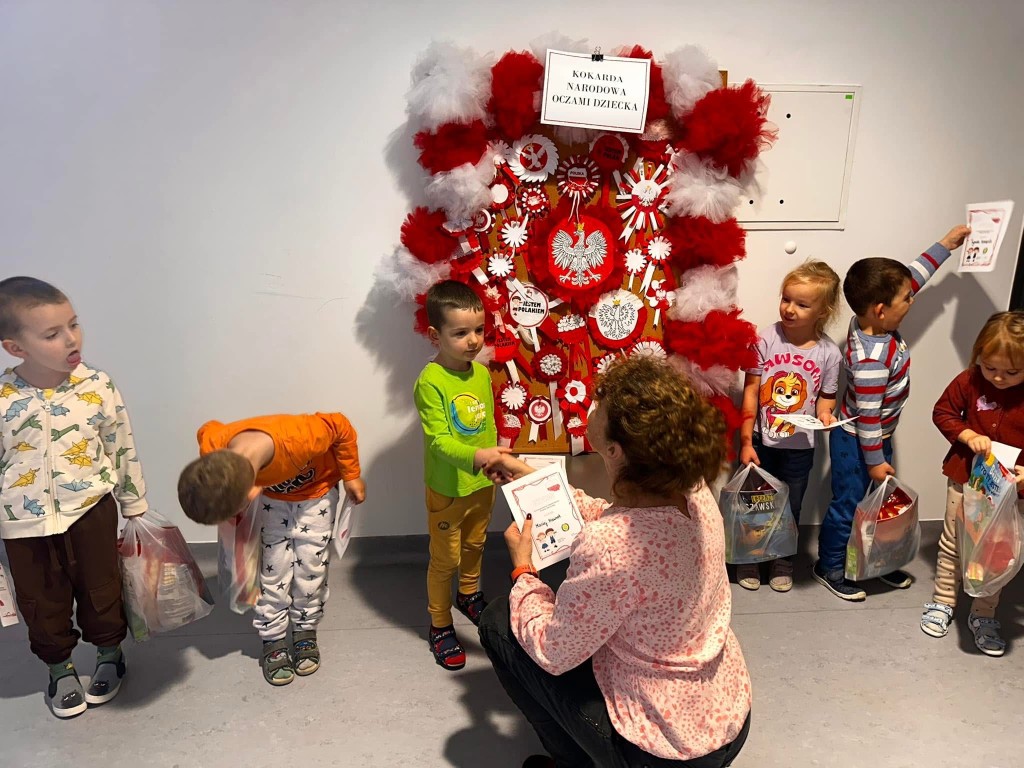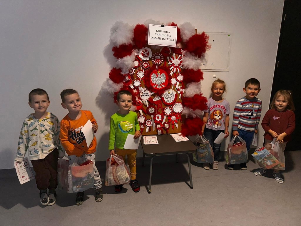 Dzieci, przy wsparciu rodziców, wykazały się ogromną kreatywnością, pomysłowością i zaangażowaniem. Powstały przepiękne, biało-czerwone kokardy – symbol naszej miłości do Ojczyzny.