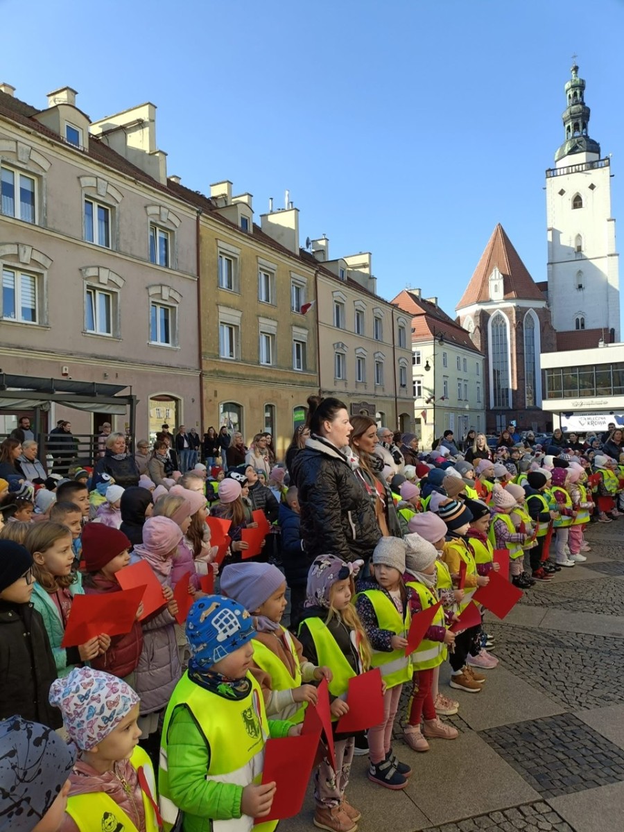 Nasze Przedszkole po raz 7 zaprosiło dzieci z oleśnickich przedszkoli do wspólnego śpiewu 4 zwrotek hymnu w ramach naszej akcji Przedszkola do Hymnu, realizując obowiązkowe zadanie projektu Piękna nasza Polska cała.